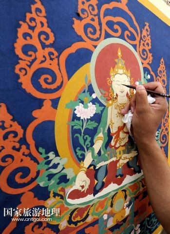 國家旅游地理 西藏拉薩8月4日訊 8月3日,一名畫師在現(xiàn)場演示唐卡繪制過程。當日,第三屆西藏“唐卡藝術(shù)博覽會”在拉薩羅布林卡舉行,共展出89名優(yōu)秀畫師的230多幅精品力作。唐卡作為藏族特有的繪畫,有上千年的歷史,已成為藏族文化的“名片”,受到國內(nèi)外廣泛關(guān)注。 /新華社記者 覺果 攝