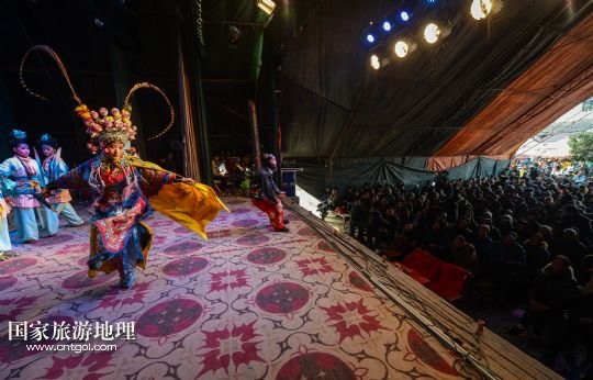 國家旅游地理 浙江金華1月3日訊 1月3日,武義壺山婺劇團(tuán)在武義縣三板橋村演出,此次演出要連演3天。新年伊始,浙江省金華市武義縣的各個(gè)鄉(xiāng)鎮(zhèn)迎來了熱鬧的“婺劇迎春”,通過政府、企業(yè)、百姓多方出資的方式,邀請數(shù)十支婺劇團(tuán)在武義各個(gè)鄉(xiāng)鎮(zhèn)演出, 幾乎場場爆滿。