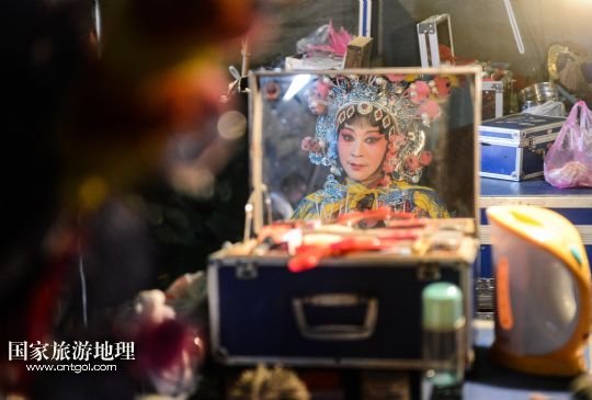 1月3日,武義壺山婺劇團(tuán)演員在上臺前整理頭飾。