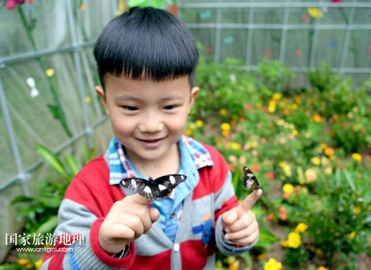 國(guó)家旅游地理 浙江杭州4月27日訊 4月27日,一名小朋友在“蝴蝶谷”觀賞落在手上的蝴蝶。當(dāng)日,位于浙江杭州江洋畈生態(tài)公園的“蝴蝶谷”對(duì)外開(kāi)放,50多個(gè)品種的600多只蝴蝶在“蝴蝶谷”翩翩起舞,吸引了眾多游客前來(lái)觀賞。 /新華社發(fā)(施健學(xué) 攝)