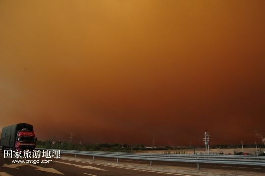 國(guó)家旅游地理 甘肅玉門(mén)5月23日訊 5月23日,在甘肅玉門(mén)市,突如其來(lái)的沙塵籠罩了整個(gè)城市。當(dāng)日上午,受新疆低槽冷空氣的影響,甘肅玉門(mén)境內(nèi)天空出現(xiàn)罕見(jiàn)的云層奇景和沙塵天氣,原本非常晴朗的藍(lán)天,霎時(shí)天昏地暗,同時(shí)伴有6至7級(jí)西風(fēng),能見(jiàn)度只有500米。新華社發(fā)(楊旭升 宋常青 攝)