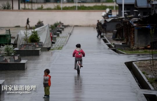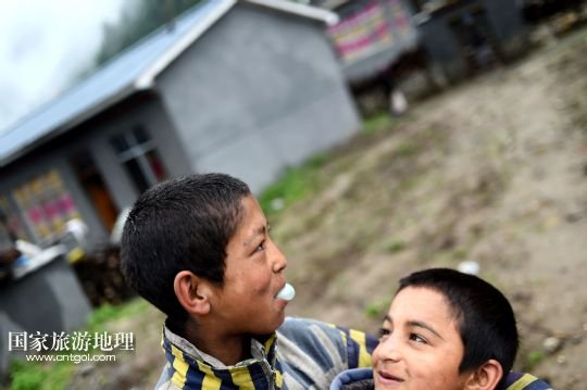 國家旅游地理 西藏日喀則7月19日訊 7月17日,孩子在達曼村內(nèi)玩耍。位于西藏吉隆縣吉隆鎮(zhèn)的達曼村,居住著近兩百名達曼人,他們是尼泊爾人的后裔。六七代人之前,達曼人的前輩從尼泊爾遷徙至此,成為“沒有國籍的人”,只能靠給當(dāng)?shù)厝舜蚨坦っ銖姸热?,孩子也無法接受教育。