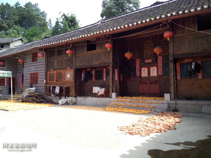 國(guó)家旅游地理 貴州黔南8月28日訊 (記者 萬(wàn)棋民 攝影報(bào)道) 上圖是在黔南貴定縣的音寨,音寨是天下布依第一寨。音寨的民居依山而建,一層一層往山上延伸。從圖中可以看到,音寨民居一半是木制結(jié)構(gòu),另一半新建的則是磚石材質(zhì)。這種新與舊的連接是兩個(gè)時(shí)代的接軌,反映了改革開放前與改革開放后隨著經(jīng)濟(jì)的發(fā)展,少數(shù)民族居民的居住環(huán)境和生活水平得到了極大的提升。在圖片右邊的木制房子大門的正上方,刻著三塊密密麻麻的字,上面刻的是毛澤東語(yǔ)錄,而且不只這一家的木制房子上刻有毛澤主席語(yǔ)錄,可以看出當(dāng)?shù)鼐用駥?duì)毛主席的敬愛(ài)之情。