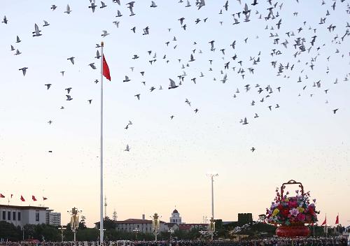 10月1日,天安門廣場舉行升國旗儀式。當(dāng)日清晨,來自全國各地的各族群眾在北京天安門廣場觀看升國旗儀式,慶祝中華人民共和國成立66周年。新華社記者 邢廣利 攝