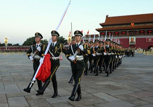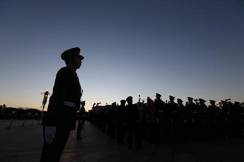 10月1日清晨,武警天安門支隊(duì)的官兵在執(zhí)勤。新華社記者 邢廣利 攝