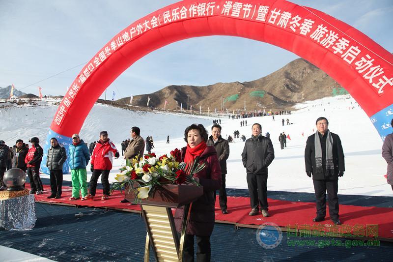 何偉局長(zhǎng)用“祁連歡歌迎盛會(huì),冰雪旅游聚英豪”來稱贊本次活動(dòng)。她在致辭中指出,在張掖扁都口隆重舉行“中國(guó)·民樂扁都口全國(guó)冬季山地戶外大會(huì)暨甘肅省冬春旅游季活動(dòng)”啟動(dòng)儀式,這是我省體育、旅游兩個(gè)產(chǎn)業(yè)融合發(fā)展的重要舉措,也是我省淡季旅游市場(chǎng)啟動(dòng)的重要標(biāo)志。冰雪旅游是品位的追求,戶外運(yùn)動(dòng)是勇者的選擇。甘肅旅游資源十分豐富,冬季旅游資源獨(dú)具特色。為了給激情飛揚(yáng)的旅游愛好者獻(xiàn)上豐盛的冬季旅游盛宴,全省各地都在積極謀動(dòng)。特別是張掖市舉全市之力,精心策劃,全力推動(dòng),不僅在大景區(qū)建設(shè)等整體旅游工作上走在全省前列,而且在淡季旅游開發(fā)上搞得紅紅火火,做出了示范。在張掖啟動(dòng)全省“冬春旅游季”活動(dòng),就是為了借張掖冬季旅游的火熱勢(shì)頭,帶動(dòng)全省淡季旅游持續(xù)升溫。希望全省旅游系統(tǒng)以本次活動(dòng)為契機(jī),整合資源,相互借勢(shì),形成合力,共同做熱、做大甘肅冬季旅游市場(chǎng),使甘肅豐富多彩的冬春旅游資源轉(zhuǎn)化為旅游發(fā)展新的亮點(diǎn)、經(jīng)濟(jì)增長(zhǎng)的新優(yōu)勢(shì)。